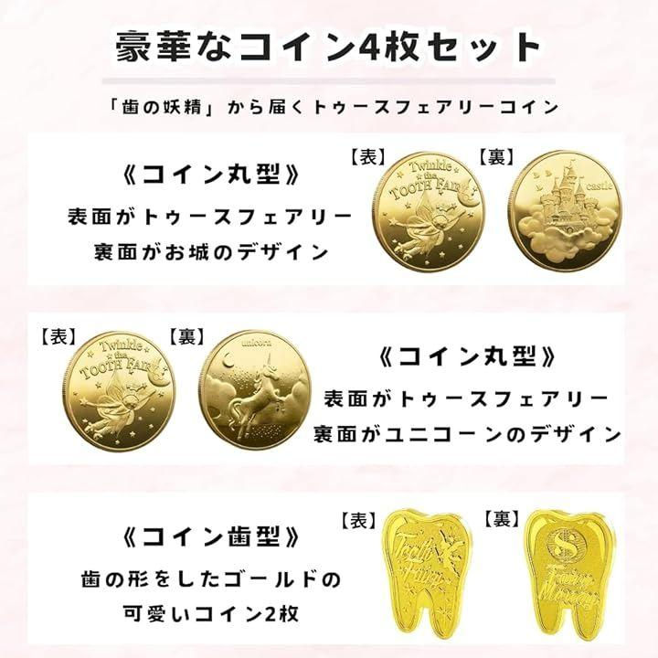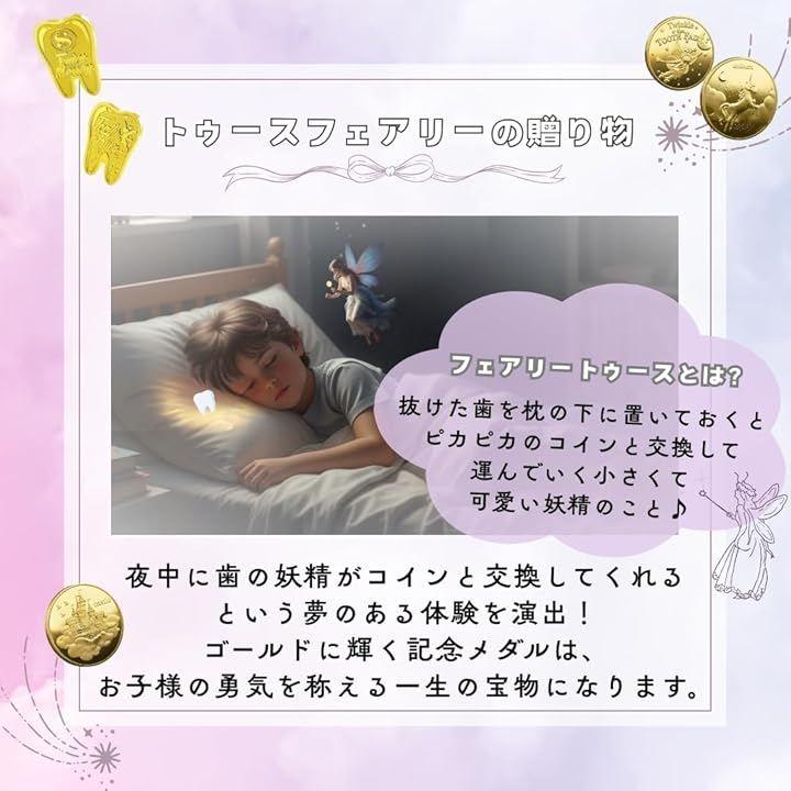 Sweet Plus 乳歯ケース トゥースフェアリー コイン 記念 歯の妖精 金貨 抜けた歯 保存 ギフト 7点セット お子様の成長の証である乳歯を、魔法のような思い出とともに残しませんか? 本製品は、北欧や欧米で親しまれている「歯の妖精(トゥースフェアリー)」の伝承を自宅で体験できるスペシャルセットです。