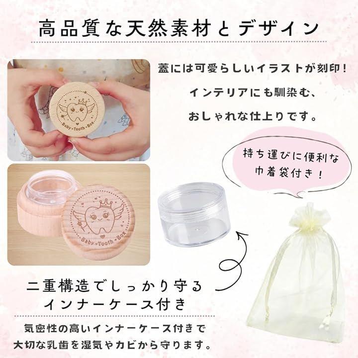 「高品質な天然素材とデザイン」 温かみのある天然木を使用した乳歯入れは、気密性の高いインナーケース付きで大切な乳歯を湿気やカビから守ります。