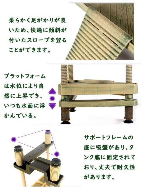 【高品質PVC製】プラスティックを使用した陸場を設置してあげることで、自然に近い環境で飼育することができます。柔らかく足がかりが良いため、快適に傾斜が付いたスロープを登ることができます。