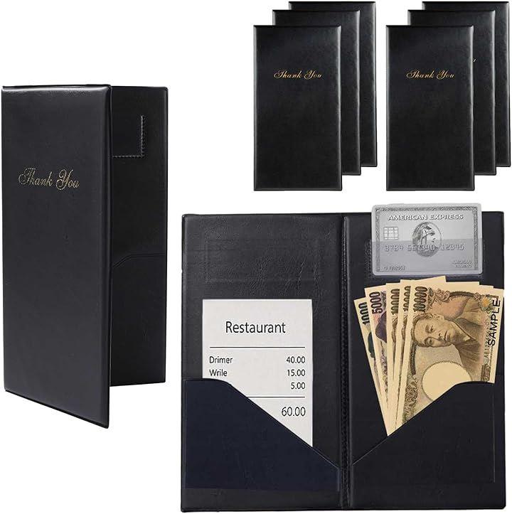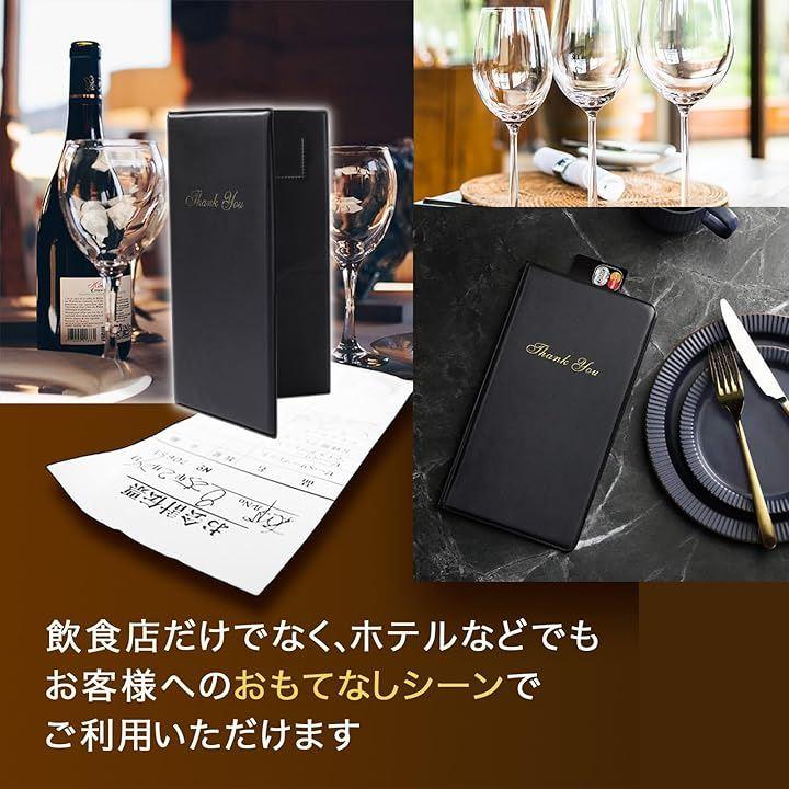「上質なPUレザーを使用した二つ折り伝票ホルダー」 高級感のあるPUレザー素材を使用した、洗練された二つ折りタイプの伝票ホルダーです。