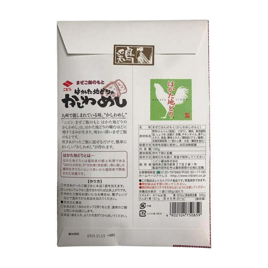 九州、特に福岡のうどん店では大抵のお店に並んでいる「かしわ飯」は、家庭でもよく食卓にのぼる親しまれた味です。“はかた地どり"のかしわ飯の素は、九州で第一号の特定JAS認定地鶏である「はかた地どり」を使った、風味豊かな混ぜごはんの素です。炊きあがったご飯に混ぜるだけで、ご家庭で簡単においしい“かしわ飯"が作れます。
