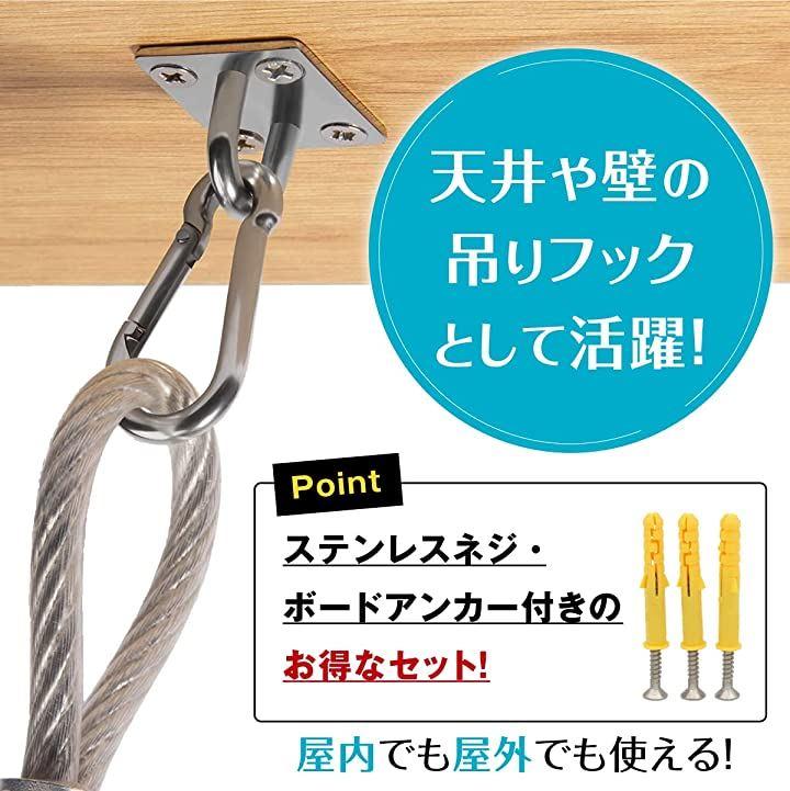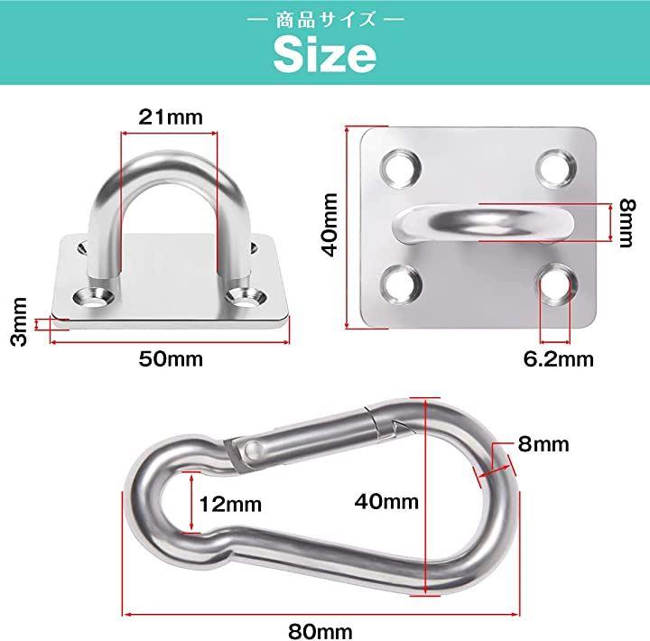 ・「すぐに使える」 パッドアイ アイプレート4個とカラビナ4個と設置に必要なネジ、アンカーがそれぞれセットになっておりますので、アイプレートに合うネジを探して別途購入する必要もなく、すぐに使うことができます。