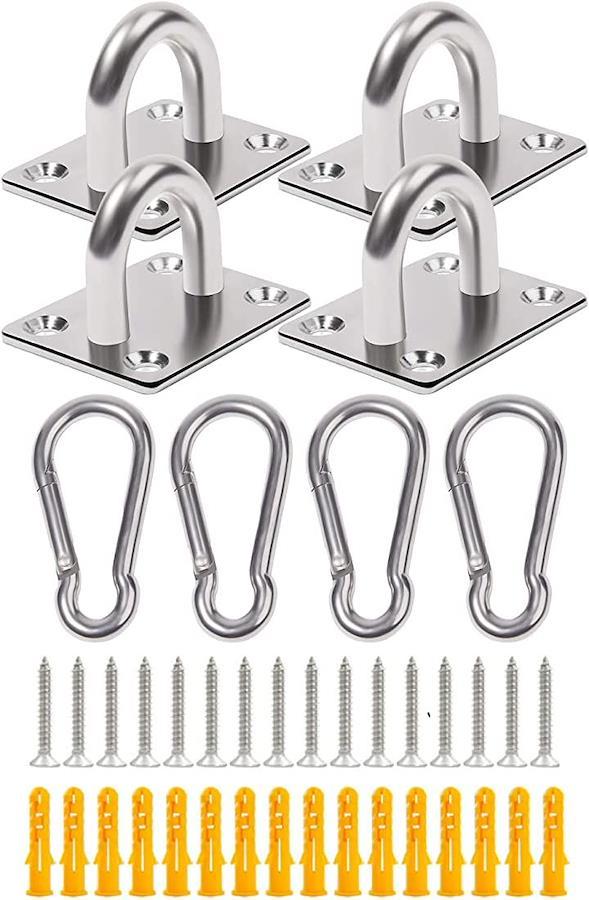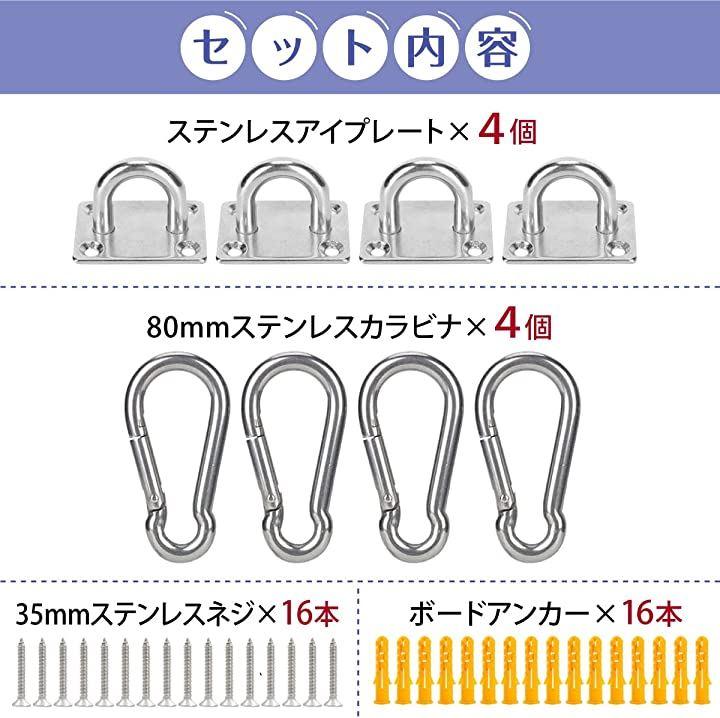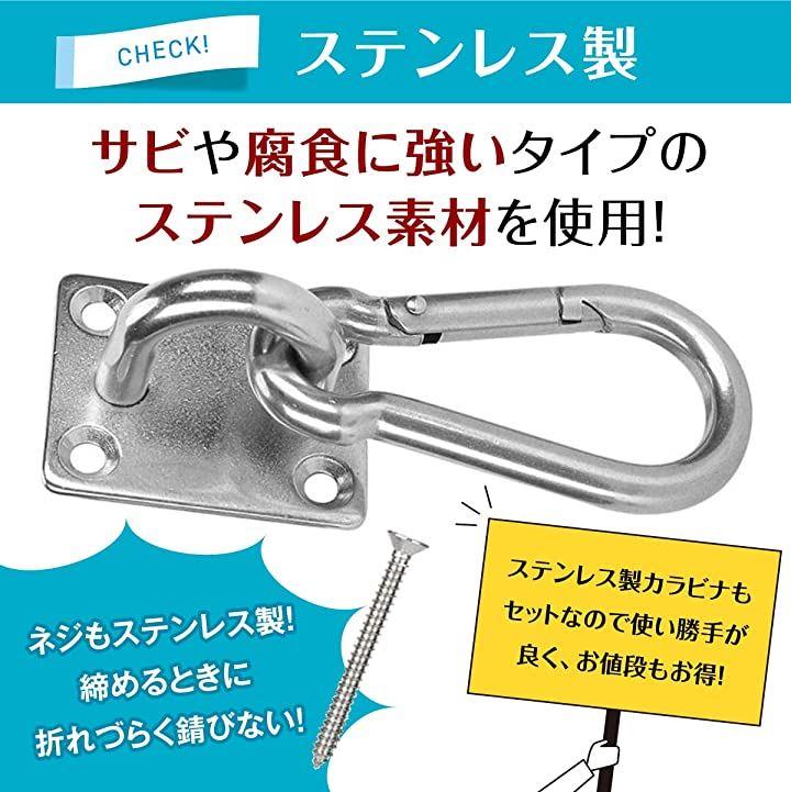 互換品アイプレート パッドアイ カラビナ4個セット 日除け サンシェード セイル 取り付け金具 ステンレス製 日差し タープ おしゃれ