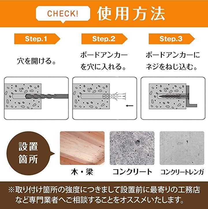 アイプレート:500mmx400mm 、カラビナ:80mm 「内訳」アイプレートx4P、ステンレスネジx16P、ステンレスカラビナx2P、ボードアンカーx16P。