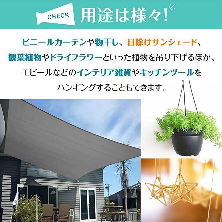 高温や低温の双方の環境で耐熱性と強度を維持する性能を持っていますので室内だけではなくガレージ、庭など屋外でもご使用頂けるフックです。