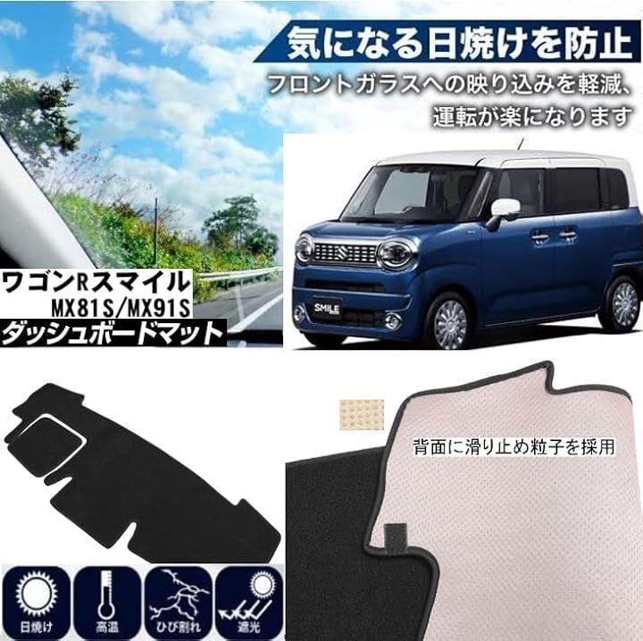 「適合車種」ワゴンRスマイル MX81S/91S系 (2021.9 - ) 「車内温度低減」 ダッシュボードマットは真夏の炎天下、駐車中の車内温度を和らげるのに効果大です。