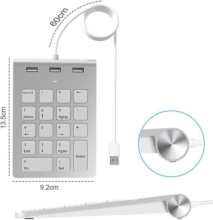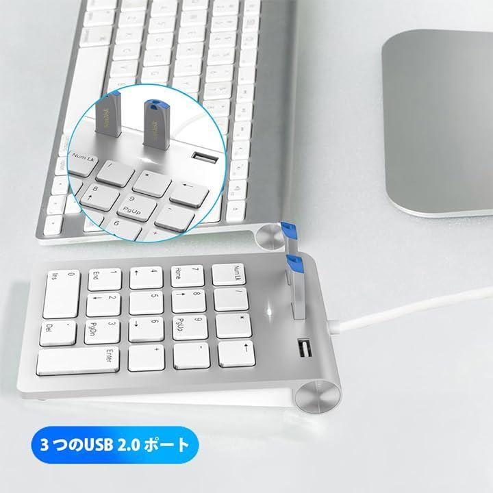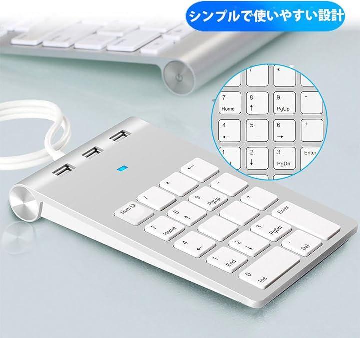 ハブを備えた多機能なテンキー:このキーボードには3つのUSBハブが内蔵されており、追加のUSBポートが必要な場合でも便利です。