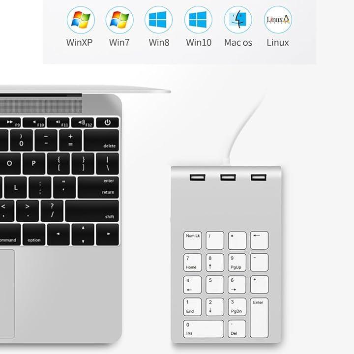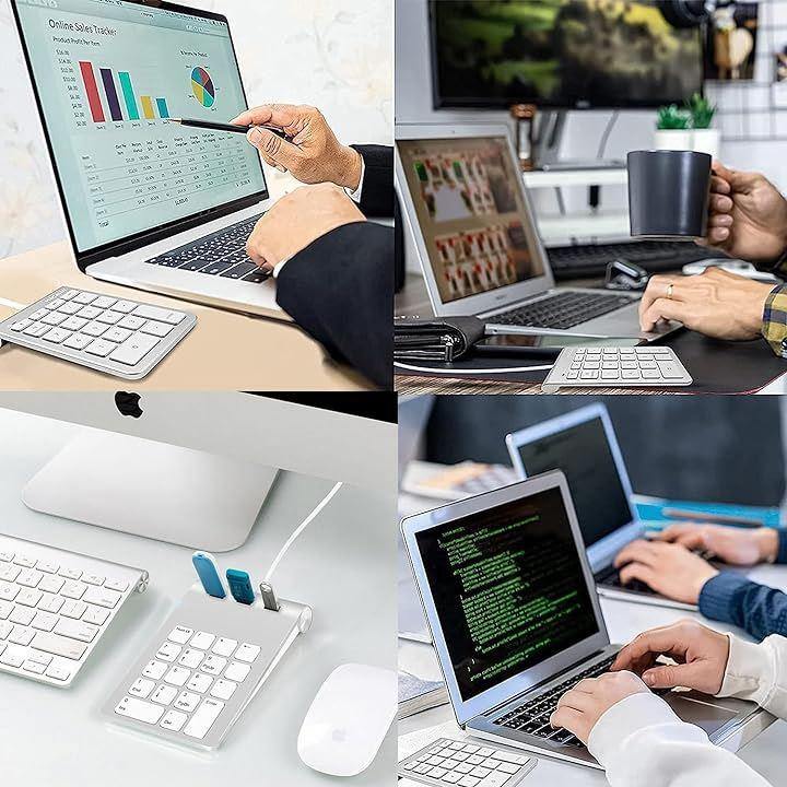 超薄型でコンパクトなサイズ:数字キーパッドとUSBハブ機能を備えた有線テンキーは、コンパクトなサイズでスペースを取りません。