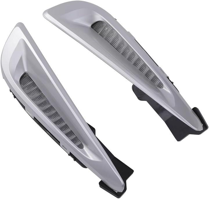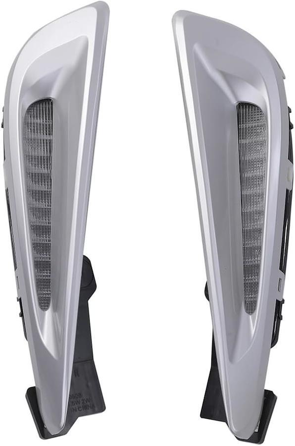 カラー:サテンシルバー 点灯カラー:ホワイト / アンバー(シーケンシャルウィンカー)配線色:赤 デイライト、黄 左右ウインカー、黒 アース
