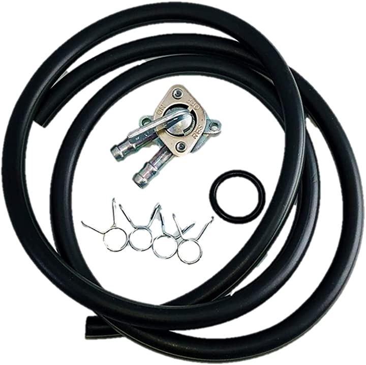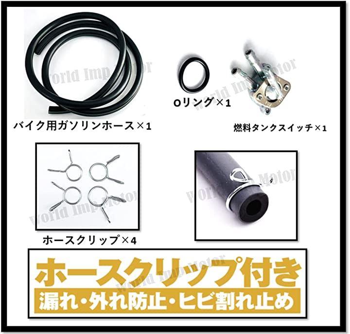 ・v「セット内容」 ・ 燃料タンク スイッチ x1 ・ バイク用ガソリンホースx1(長さ約 1M)・ ホースクリップ4個 v「素材」 ・ 燃料コック: 高品質 アルミ 合金 ・ ホース: 耐油性 合成ゴム