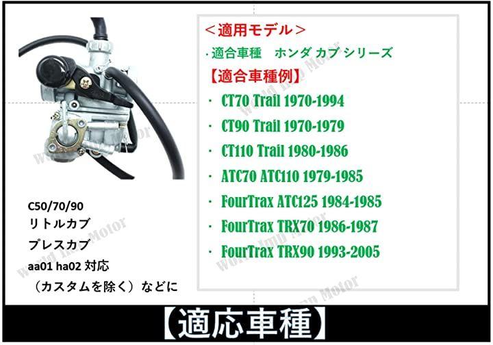 ・v 「適合車種」v ・ C50 C70 C90 CT70 CT90 CT110 リトルカブ プレスカブ 等に取り付け可能です ・ホンダ用 CT70 Trail 1970-1994 ・ CT90 Trail 1970-1979 ・ CT110 Trail 1980-1986 ・ ATC70 ATC110 1979-1985 ・ FourTrax ATC125 1984-1985 ・ FourTrax TRX70 1986-1987 ・ FourTrax TRX90 1993-2005 ・ PassPort C70 1980-1983