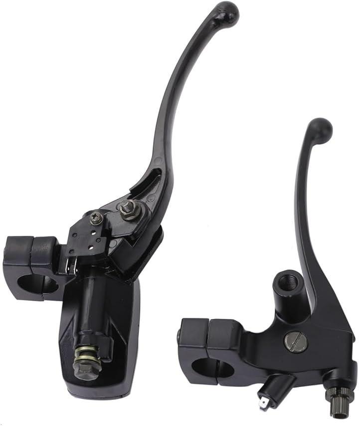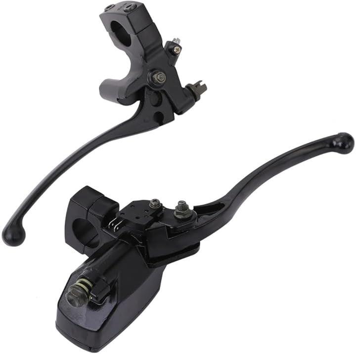 サイズ(約):ハンドル径25mm(1インチ) クラッチ側全長20cm マスター側全長28cm レバー長さ16cm マスターシリンダーホースボルト径10mm ピストン径14mm ミラーネジ左右10mm正 フルード液DOT4 材質:アルミニウム合金、鉄