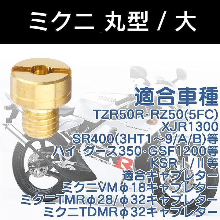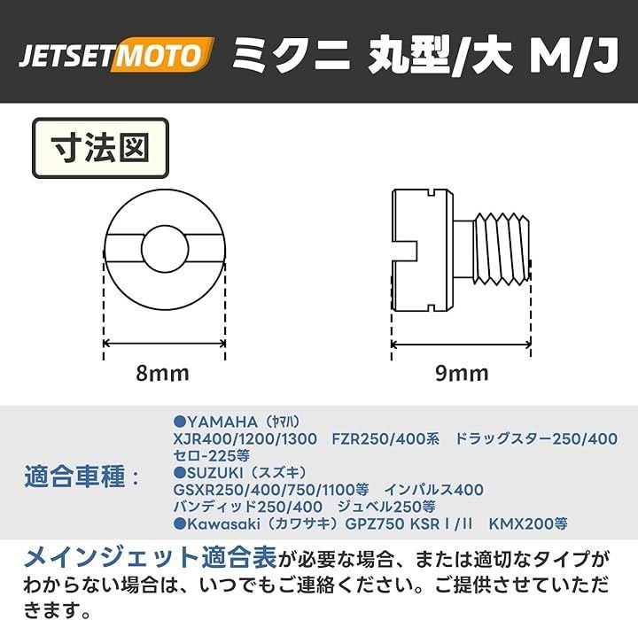 「メインジェット 適合車種 」TM | TMR | MJN24 | TDMR | VM22 | XT225/セロー(-1998) | マジェスティ125 (キャブ最終) | Volty250(-1999)|TZR50R・RZ50(5FC)/XJR1300・SR400(3HT1~9/A/B)等/ハイ・グース350・GSF1200等/KSRI/II等/下記の取り扱いキャブレター ミクニVMφ18/TMRφ28/φ32/TDMRφ32
