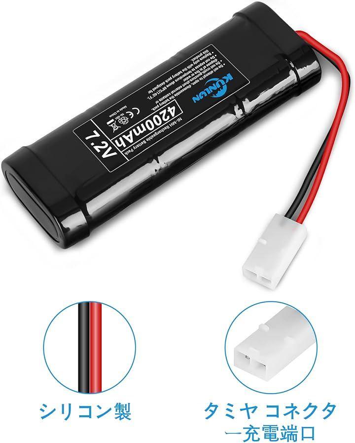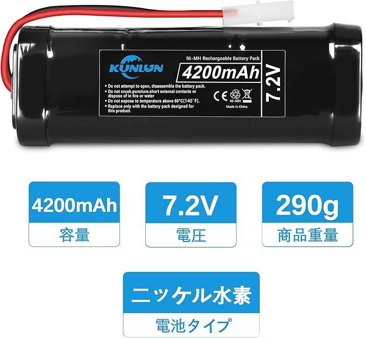 「7.2v ラジコン バッテリー」容量:4200mAh 色:黒 サイズ:13cm x 4.5cm x 2.3cm 高効率な通電を実現する。