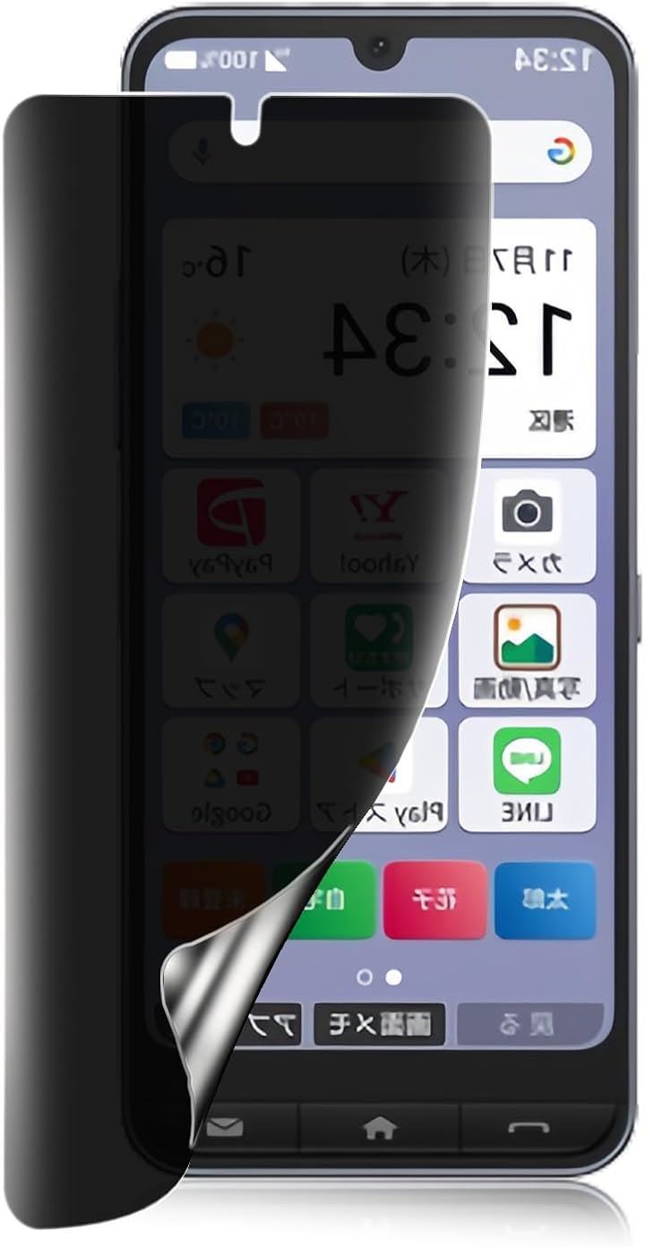 「覗き見防止 プライバシー保護」これは180度仕様のプライバシー保護フィルムで、スマホを縦に持っていると、左右から画面を覗き込むのを防ぐことができます。
