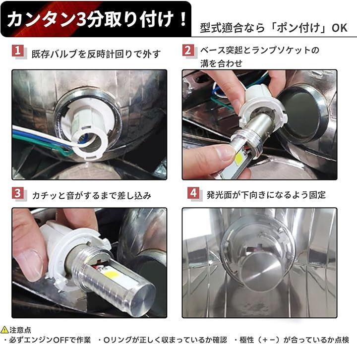 「3分で簡単取付。工具不要」「外す>合わせる>差す>固定」の4ステップで完了。PH7(P15D)ソケット対応のLED ヘッドライトなら、適合車種であれば自分でカンタン交換可能。