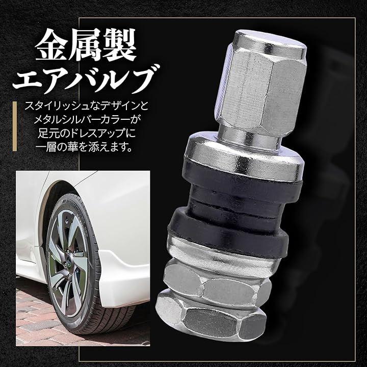 「金属製エアバルブ」金属特有の重厚感が愛車の足元を引き締め高級感をアップします。