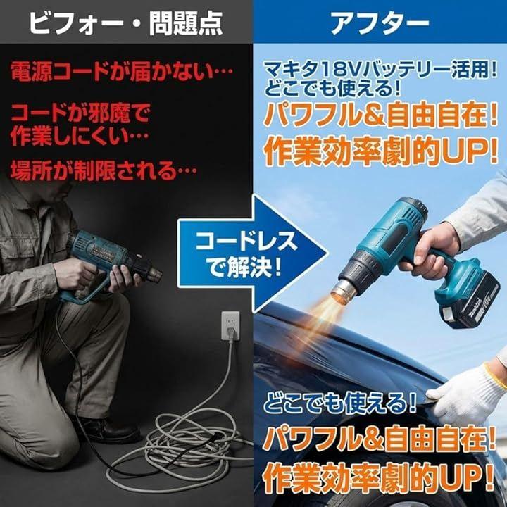 「商品概要」温度調整機能を搭載したコードレスヒートガンです。