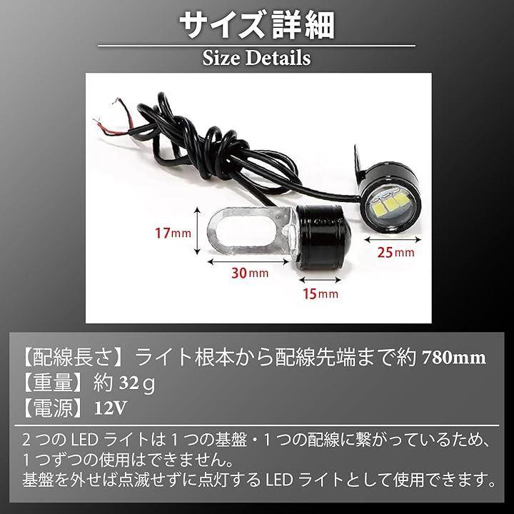 「多様な用途で使用可能」LEDストロボライトは、コンパクトな小型サイズでオートバイや車などの車両に簡単に装着可能。