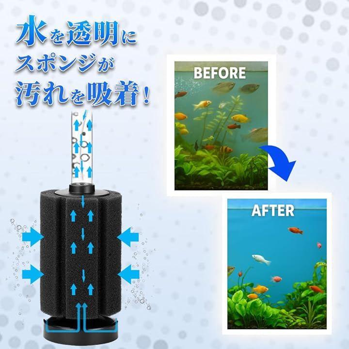 このVORZIPスポンジフィルターは、メダカ、金魚、熱帯魚などの水槽に最適な投げ込み式フィルターです。