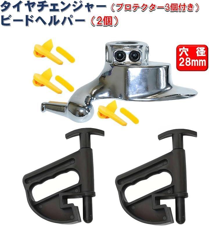 タイヤチェンジャー(プロテクター3個付)、ビードヘルパー2個セット:チェンジャー、直径28mm、金属製、キズ防止プロテクター付き ビードヘルパー、高さ15.5cm*モニターの環境により、色の見え方に若干差が生じる場合がございます。
