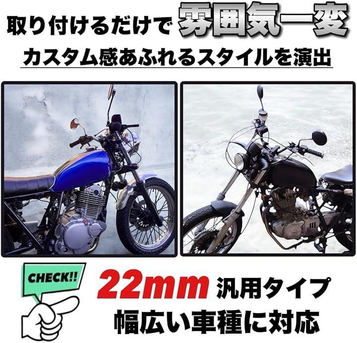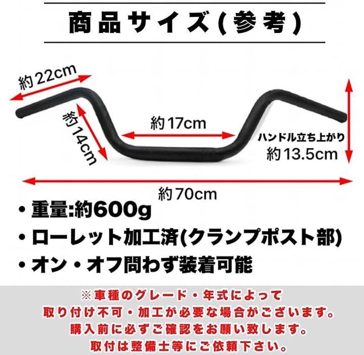 ハンドル径22.2mmのバイクに適合する汎用品で、幅広い車種に対応。