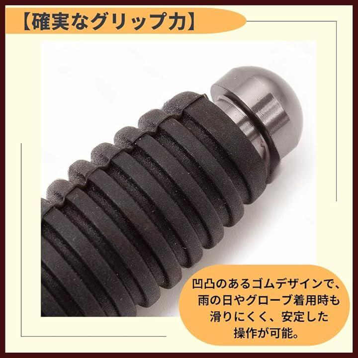 「しっかりグリップ力」凹凸のあるゴムデザインで、雨の日やグローブ着用時も滑りにくく、安定した操作が可能。