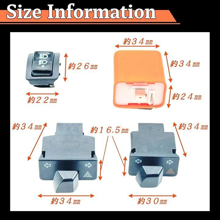 「簡単取付け」カスタムウインカースイッチとリレー、ヘッドライトスイッチセットは寸法をご確認の上、交換可能かお客様でのご判断をお願い致します。