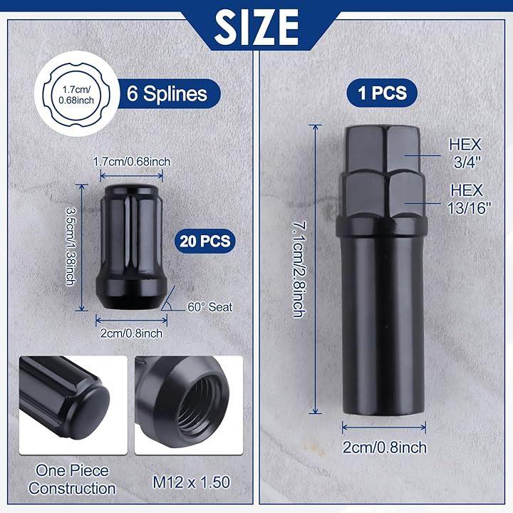 各ラグナットは、高さ3.5cmの60度の円錐形シートを備えた堅牢な6スプラインクローズドエンドデザインを特徴としています。