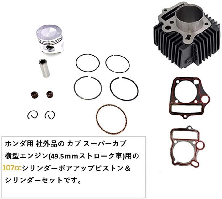 ホンダ用社外品のカブスーパーカブ横型エンジン(49.5mmストローク車)用の107ccシリンダーボアアップピストン&シリンダーセットです。