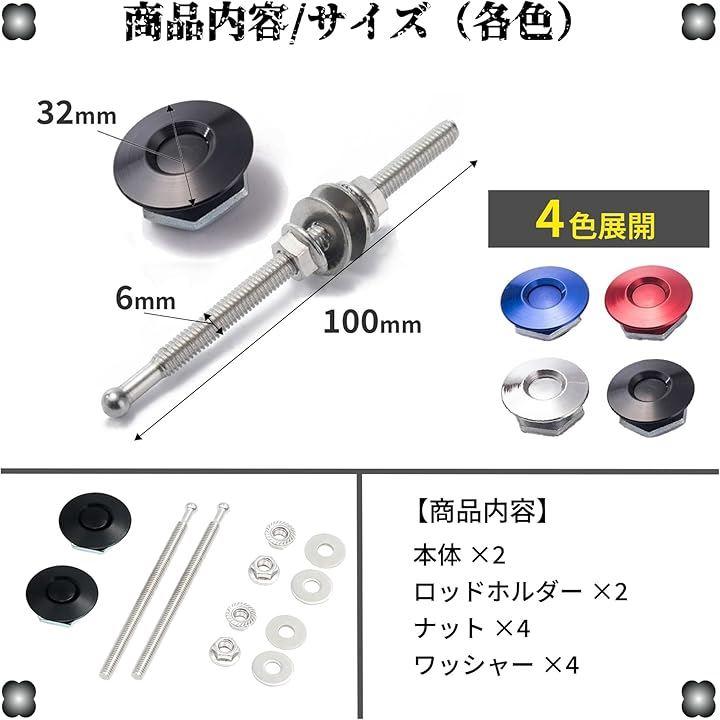 「ボンピン2個セット」社外ボンネットの固定、エンジンフードの盗難防止やイタズラ防止、純正ボンネットのカスタムやドレスアップに。。