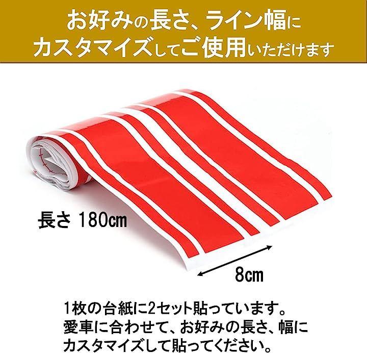 横幅8cmx長さ180cmのステッカーが2本セットとなります。