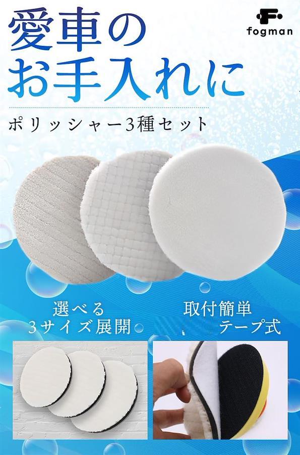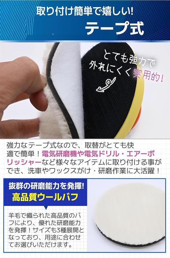 「テープ式」強力なテープ式なので、取替がとても快適で簡単。電気研磨機や電気ドリル・エアーポリッシャーなど様々なアイテムに取り付ける事ができ、洗車やワックスがけ・研磨作業に大活躍。