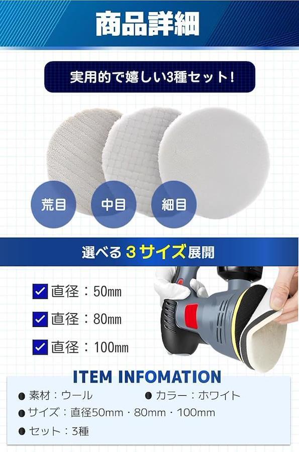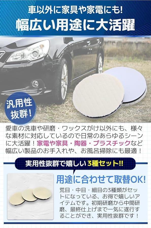 「高品質ウールバフ」羊毛で織られた高品質のバフにより、優れた研磨能力を発揮。サイズも3種展開となっており、用途に合わせてお選びいただけます。
