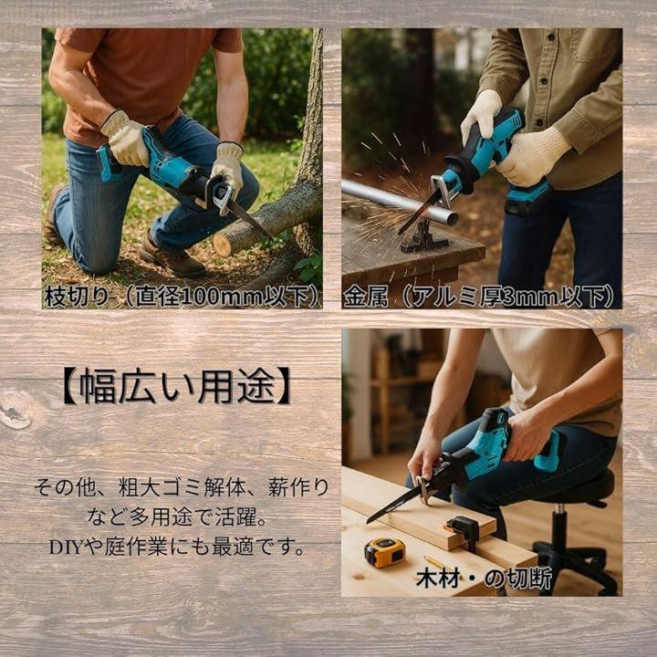 「多用途に対応」木材、枝、アルミ材(厚さ3mm以下)、粗大ゴミ解体など、日常のDIYから屋外作業まで幅広く活躍。