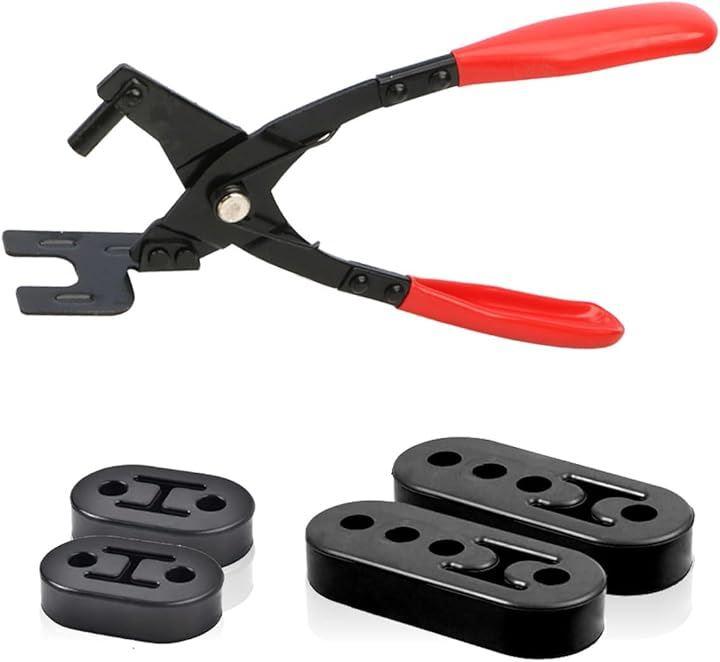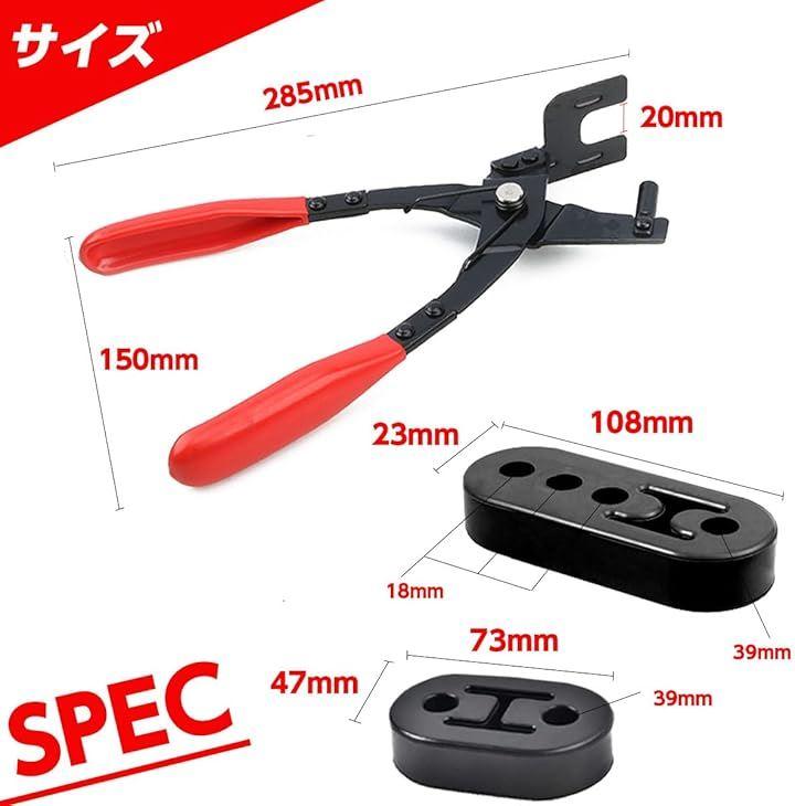 マフラーハンガープライヤー、マフラーハンガーセットは、マフラーの吊りゴムを外す専用工具とマフラーを固定するハンガーのセット。