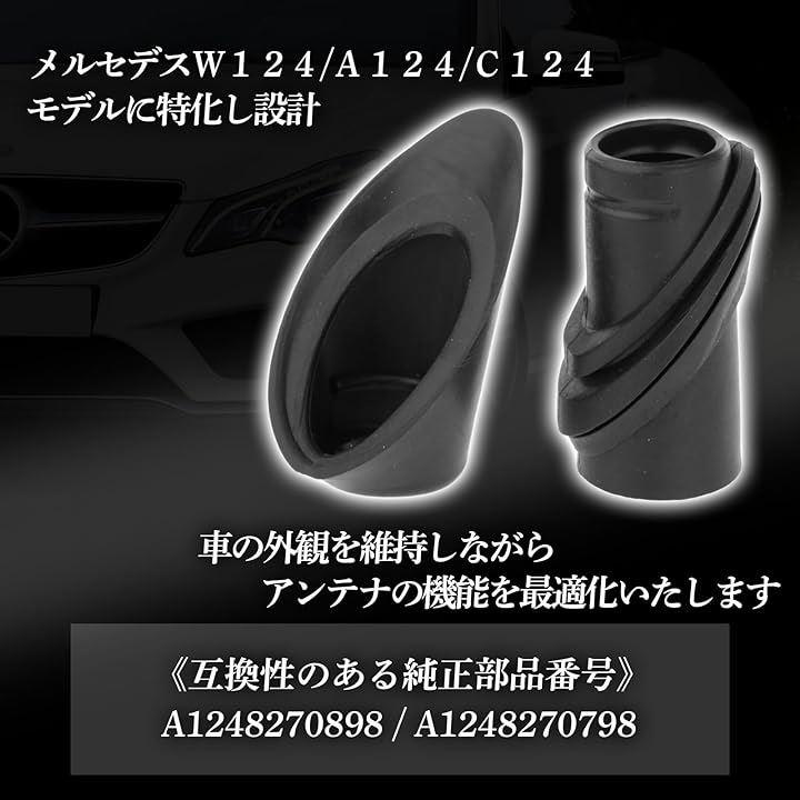 「参考適合車種」HTharrosのアンテナゴム製シールは、メルセデスW124、A124、C124モデルに特化して設計されています。