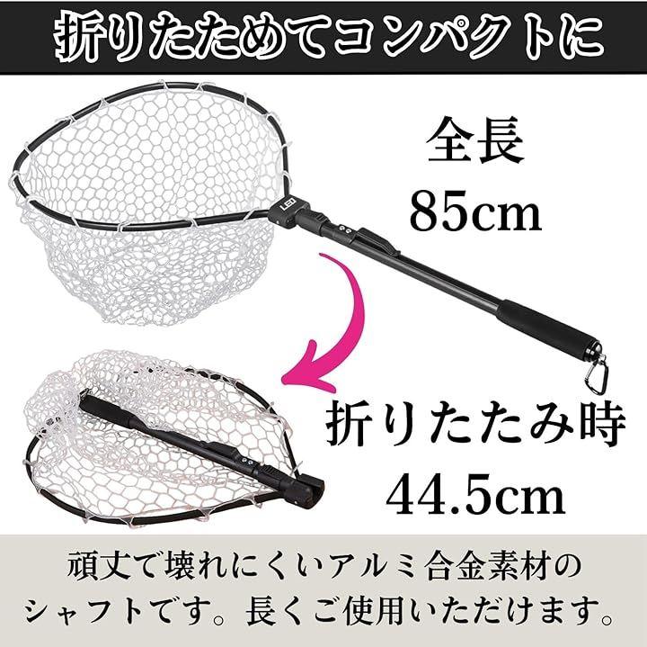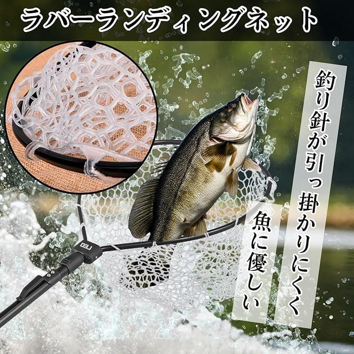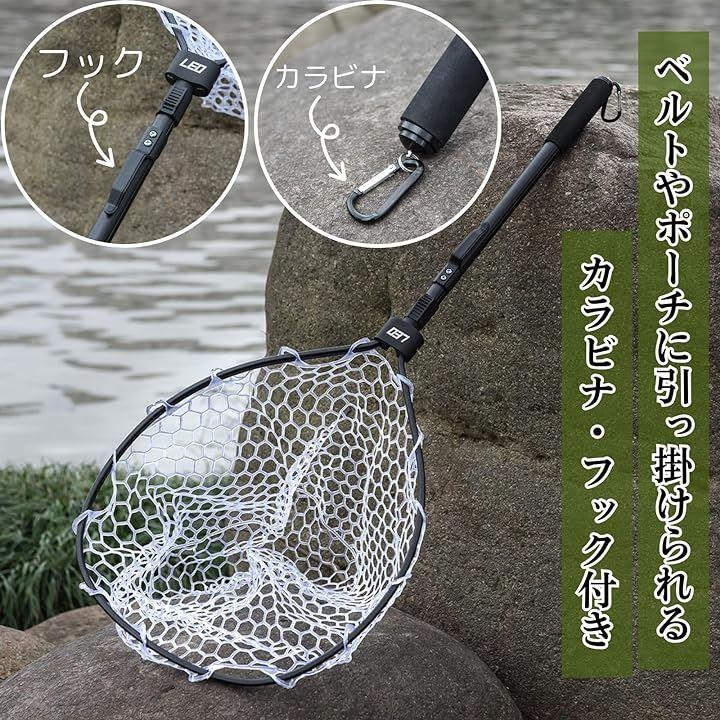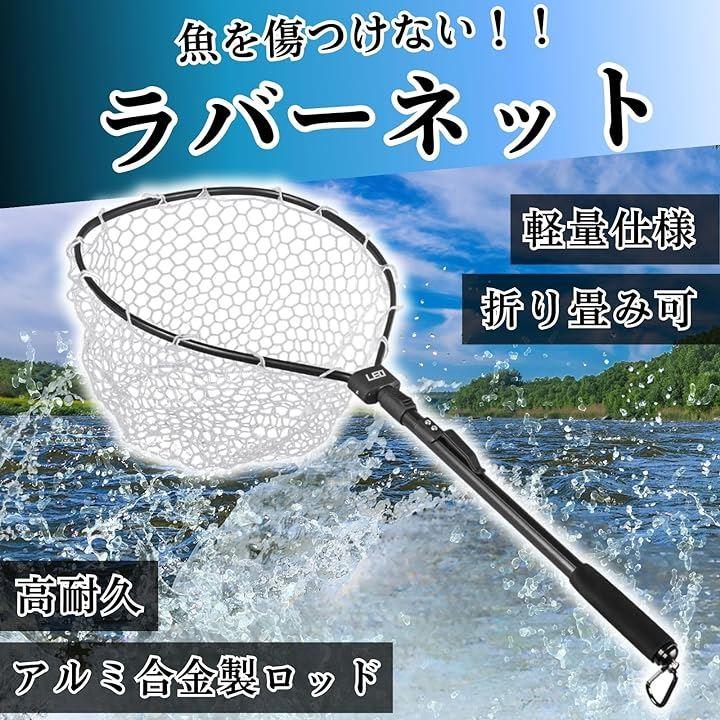 ゴム素材のラバーネット(玉網、タモ網)ですので、魚を傷付けずに釣りをお楽しみいただけます。
