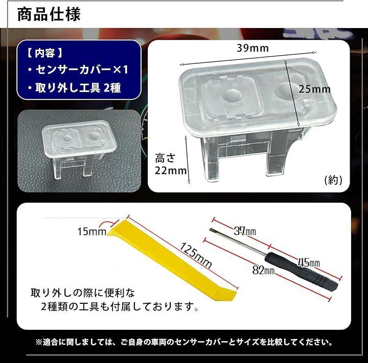 「商品仕様」内容:センサーカバーx1、取り外し工具 2種 *適合に関しましては、ご自身の車両のセンサーカバーとサイズを比較してください。