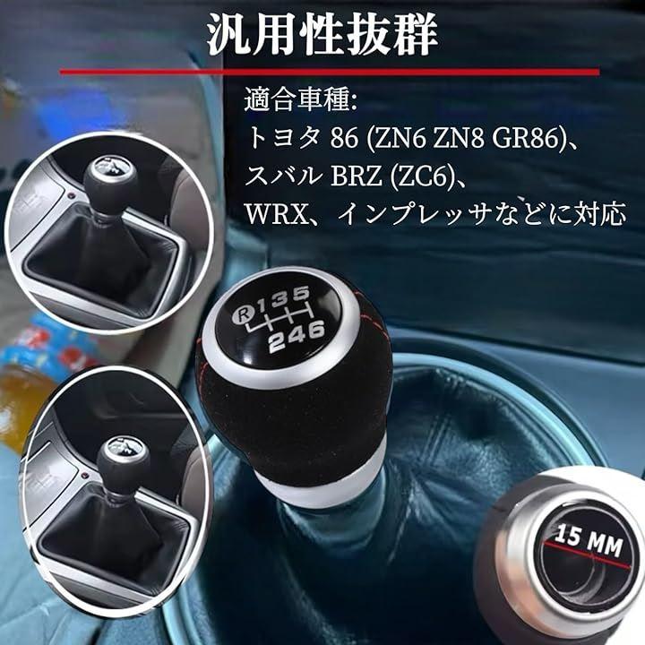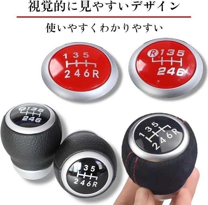 「商品仕様」内容:マニュアル車用 6速 シフトノブ サイズ:長さ約55mm、直径約40mm 材質:フェイクレザー シャフト径:M12 ネジピッチ: 1.25mm
