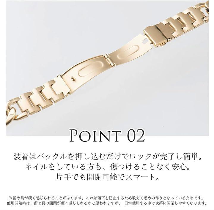 「高級感溢れるバンドで華やかに」動くたびにブレスレットが輝き、重厚感と光沢により高級感を演出しています。