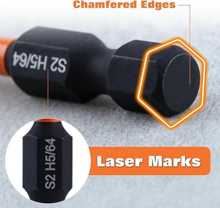 耐久性のあるS2鋼から作られたこれらの六角ビットは、厳しい要求に耐えるように作られており、長持ちする性能です。