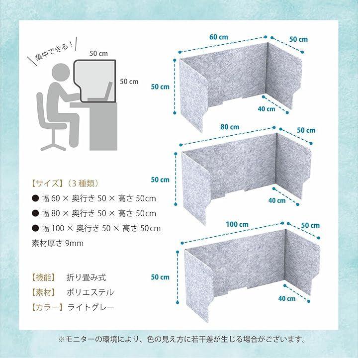インテリアに合わせやすい、集中力アップのライトグレー、高さ50センチで圧迫感も少なくしっかり目隠し。