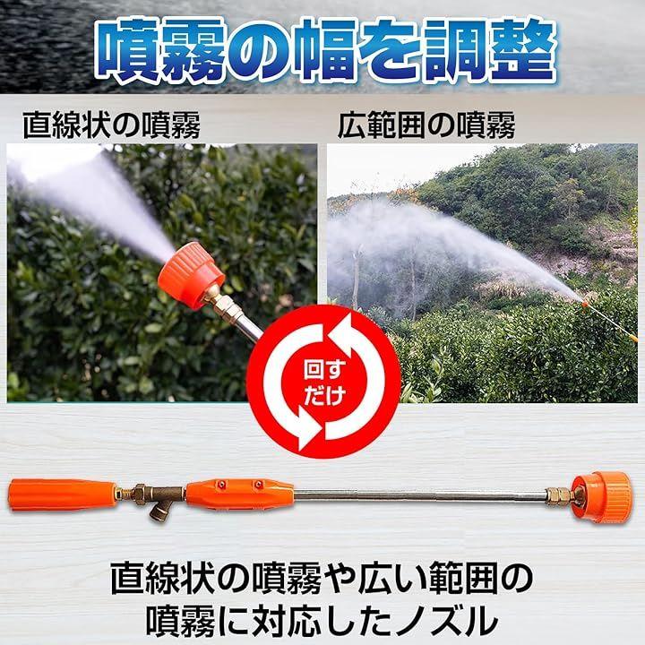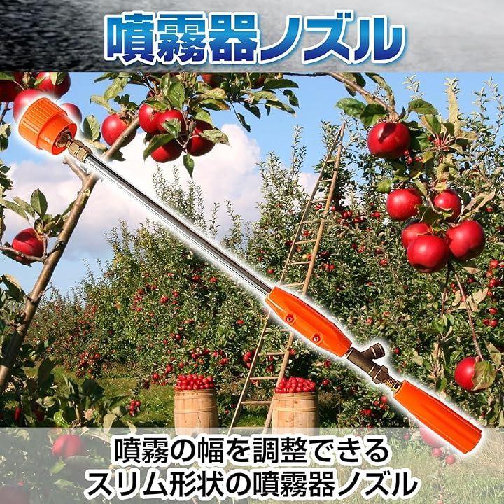スリムタイプノズルは、噴霧の幅の調整も簡単、軽量タイプで長時間の作業も楽々。