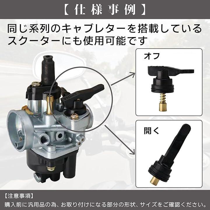 「対応車種例」DIO AF18 AF25 スーパーディオ AF27 AF28 ライブディオ AF34 AF35 ジョルノ タクト AF24 AF30 AF31 AF51 トゥデイ AF61 リード AF20 AF48 クレアスクピー AF55 ジーダッシュ AF23 ズーマー BA-AF58 ジョーカー AF42 ジャイロキャノピー ジャイロUP キャノピー TA01 TA02ジャイロX TD01 リード90 リード100 HF05 JF06 など(同じ系列のキャブレターは取り付け可能)