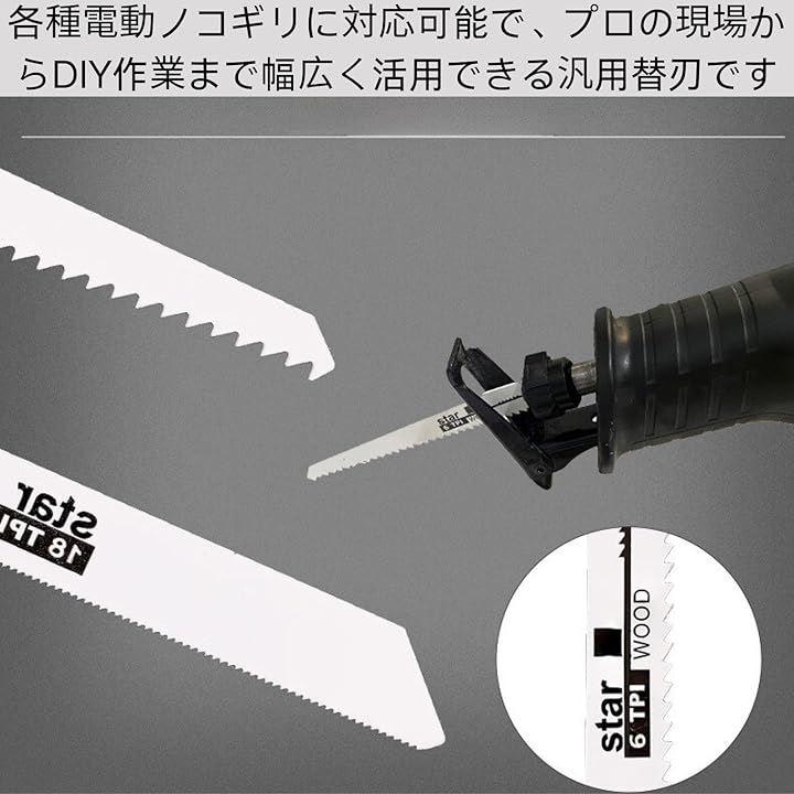 各種電動ノコギリに対応可能で、プロの現場からDIY作業まで幅広く活用できる汎用替刃です。