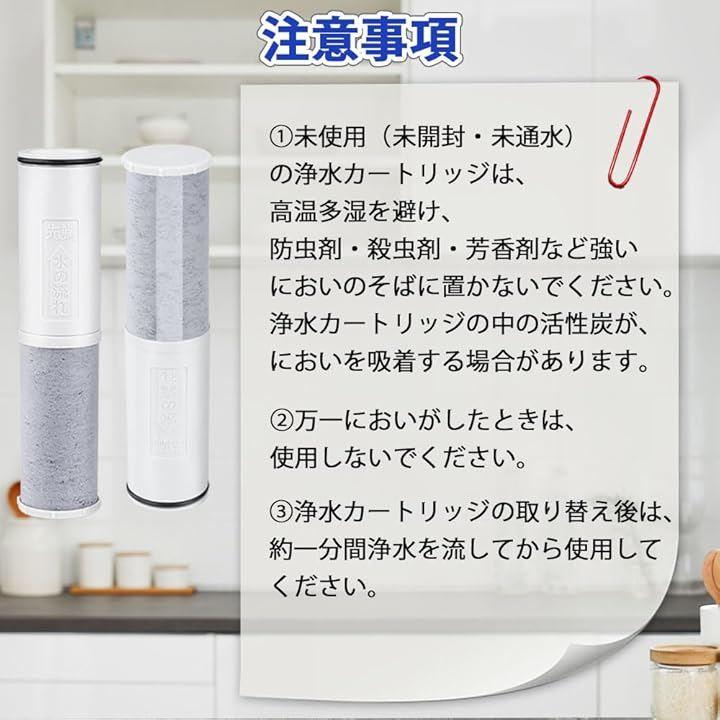「高除去タイプ」遊離残留塩素、PFOS・PFOA、濁度(雑菌・微粒子等)、溶解性鉛、2-MIB(カビ臭)、CAT(農薬)などの物質を除去、水道水を綺麗で美味しい水に変えます。