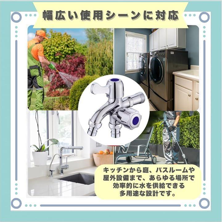 「幅広い使用シーンに対応」キッチンから庭、バスルームや屋外設備まで、あらゆる場所で効率的に水を供給できる多用途な設計です。