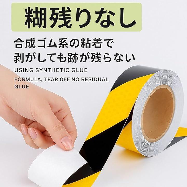 「視認性と安全性を両立」 5cm幅x25m長の使いやすいサイズで、トラックやバイク、自転車のマーキング、階段の縁、順番待ちのラインなど、視認性と安全性を高めたい場所にぴったり。
