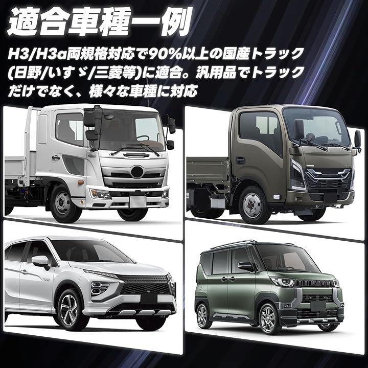 12V/24V自動電圧対応、H3/H3a両規格に対応し、国産トラック90%以上に適合。